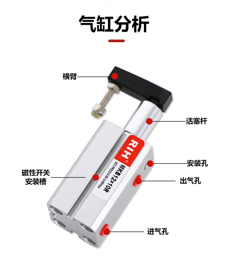 MK旋转气缸主要应用于自动化生产车间夹紧物体的作用,旋转夹紧气缸旋转方向分为(左L)(右R)两种。