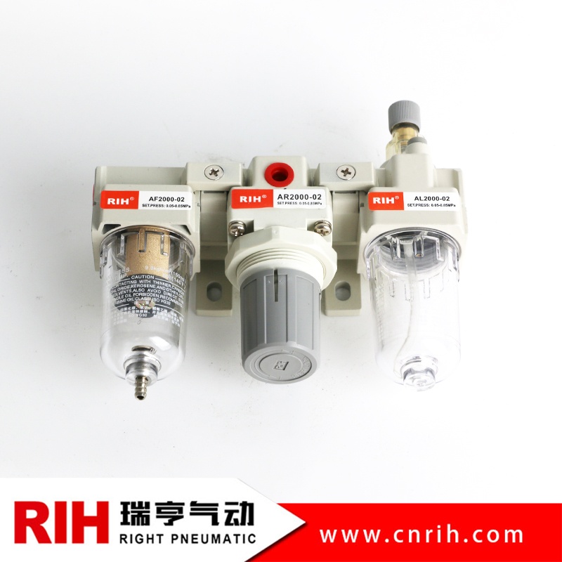 SMC型气动三联件AC2000-02,由气源过滤器,调压阀,油雾器组成,结构轻巧,压力损失小,分水效率高;透明视察罩,可直接观察滴油量大小;所生产的产品能够完全代替SMC三联件,提供最全面的SMC气动三联件价格选型,服务于自动化气动行业配套与解决方案是我们的宗旨。