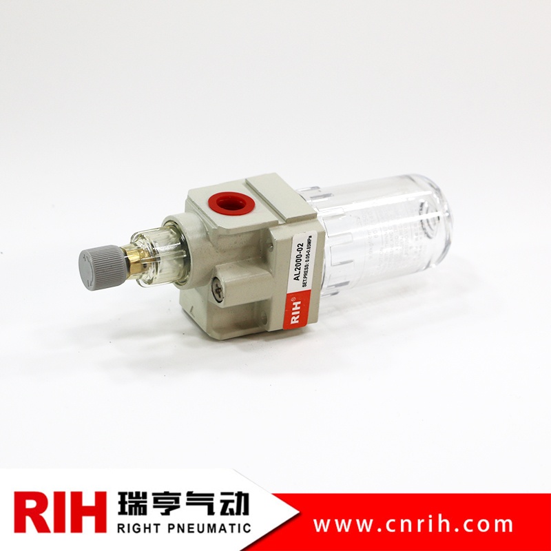 油雾器是一种特殊的注油装置,它将润滑油进行雾化,并注入空气流中,随压缩空气流入需要润滑的部位,达到润滑的目的,比如气缸内活塞杆的润滑,气批的转动润滑等。瑞亨所生产的AL2000能够完全代替SMC油雾器,提供最全面的油雾器给油器型号选型、价格销售服务。