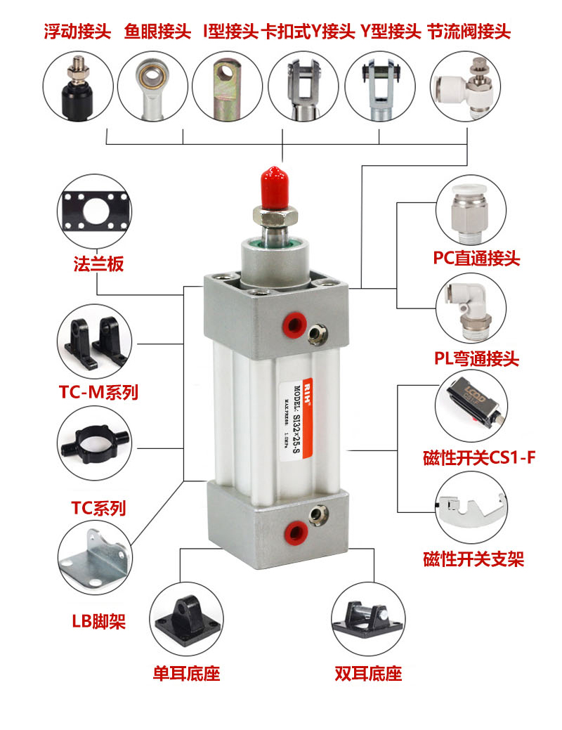3、多种气缸安装附件可供选择,灵活多变。