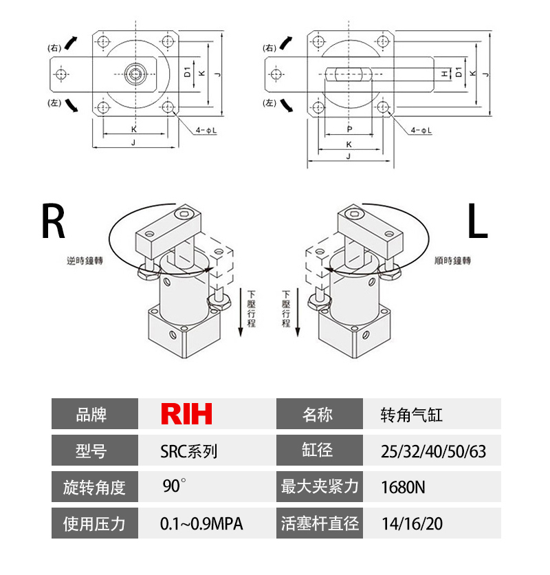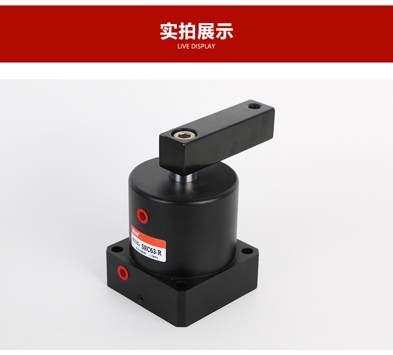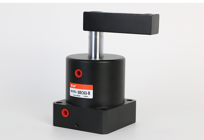 SRC气缸是90度转角气缸,其行程是由旋转行程和夹紧行程2个部分组成的,并使用时夹紧动作务必发生在夹紧行程中。瑞亨气动生产的SRC转角气缸,旋转槽采用特殊硬质处理,硬度和使用寿命是同行的二倍以上,SRC气缸适合空间狭小的环境下使用,是工业自动夹紧中常用的转角下压夹紧气缸
